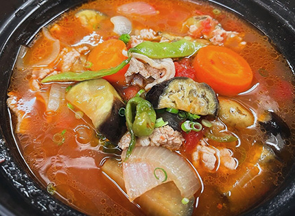 良質な国産の豚肉を使用して、肉汁のうまみいっぱいのボリュームのあるビルマ汁です。(期間はお店にご確認ください。)